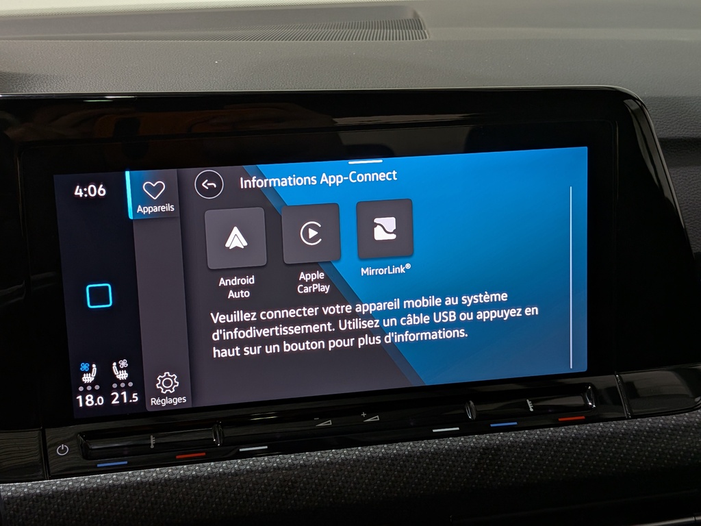 Radio avec recherche et balayage, montre, volume asservi à la vitesse, prise d'entrée audio auxiliaire, commandes au volant, commandes vocales et système de radiocommunication de données