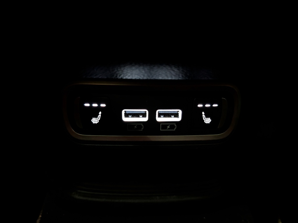 console au plancher pleine grandeur avec compartiment de rangement couvert, miniconsole au pavillon, 2 prises de courant de 12 v c.c. et 1 prise de courant intérieure de 120 vca