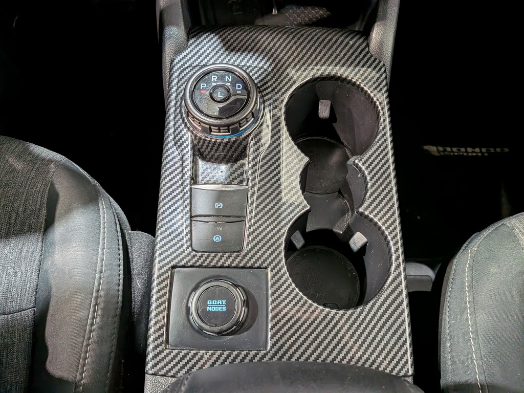 console au plancher pleine grandeur avec compartiment de rangement couvert, miniconsole au pavillon avec compartiment de rangement et 3 prises de courant de 12 v c.c.