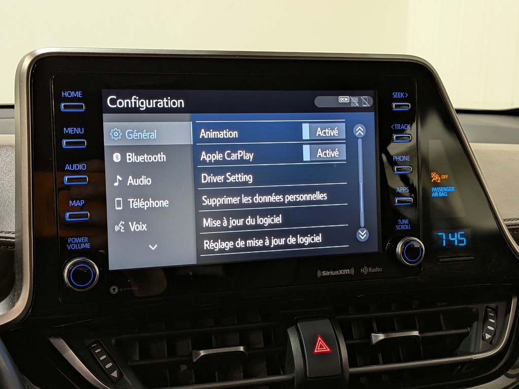 oui am/fm stereo avec recherche et balayage, montre, volume asservi à la vitesse, prise d'entrée audio auxiliaire, commandes au volant, commandes vocales et système de radiocommunication de données