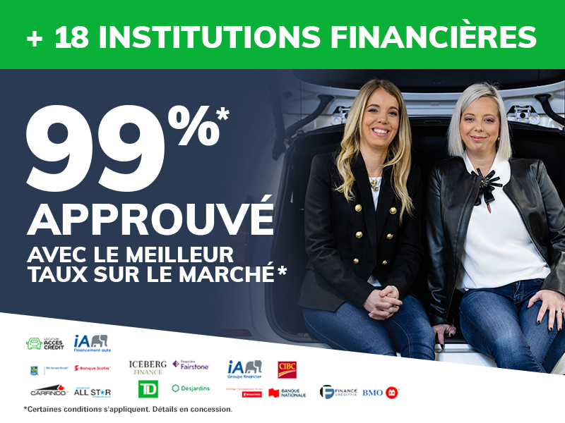 FINANCEMENT : Nous sommes affiliés avec plus de 18 institutions financières afin de trouver le meilleur plan de financement pour votre nouveau véhicule. Avec le meilleur taux sur le marché, 99% de nos transactions sont approuvées !